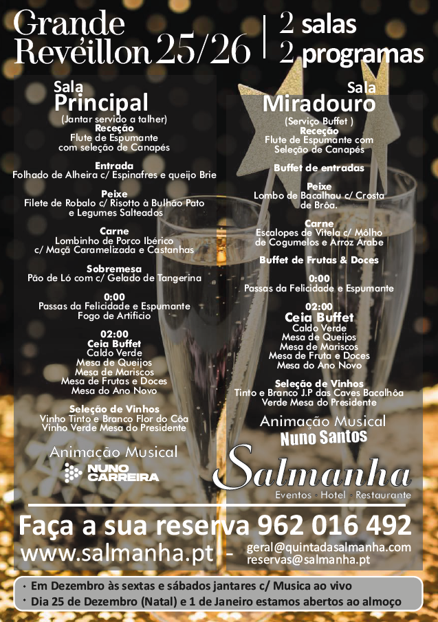 Na Quinta da Salmanha encontra o hotel, o espaço para eventos sociais e/ou empresariais e o restaurante. Num único espaço, temos a solução para o seu projeto profissional, para as suas férias ou para uma refeição requintada.